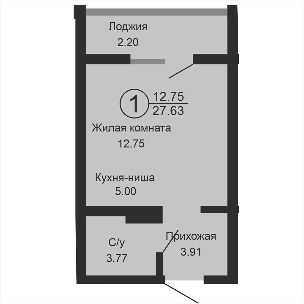квартира в новостройке 27,63 м2 по ул. Геннадия Донковцева 1 за 3000000 руб. |