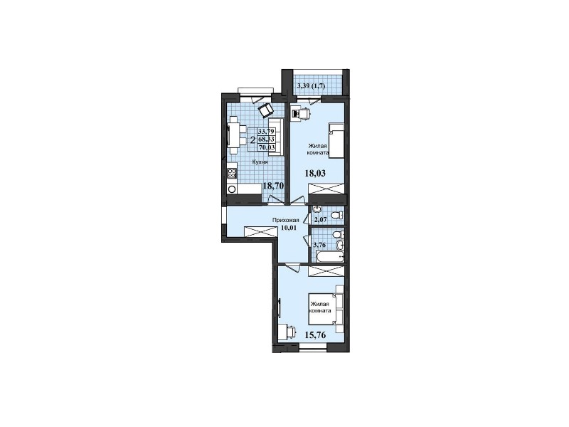Двухкомнатная квартира в новостройке 70,00 м2 по ул. Ильи Глазунова 18 за 4500000 руб. |