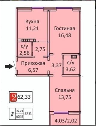 5 500 000 р. (87 302 р./м2) Подать заявку на ипотеку |