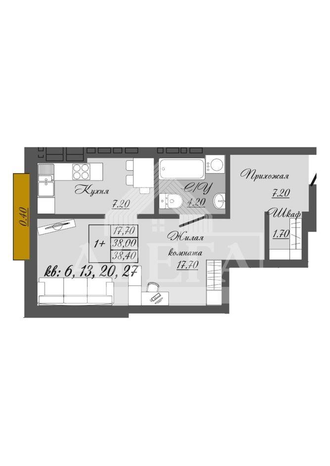 общая 38 м2, жилая 0 м2, кухни 0 м2 |