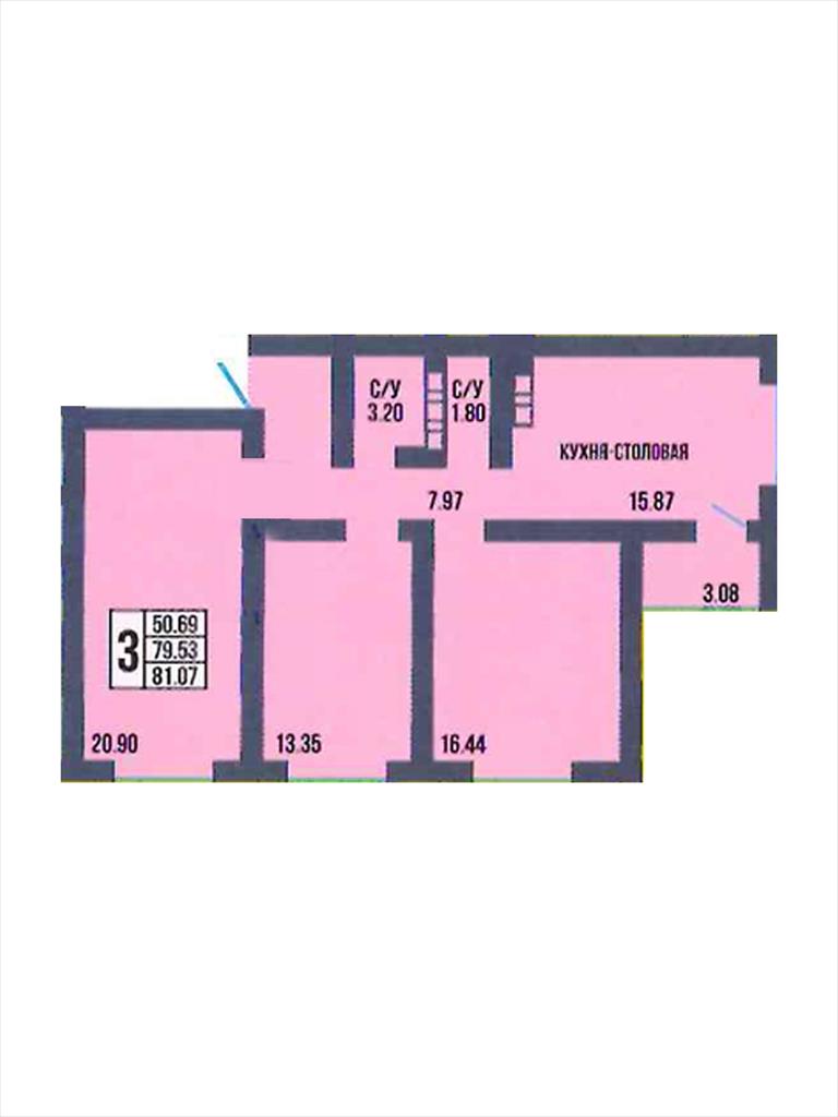 Трехкомнатная квартира 81,07 м2 по ул. Ильи Глазунова 3 за 6630203 руб. |