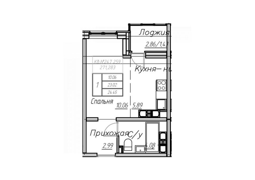 общая 25 м2, жилая 0 м2, кухни 0 м2 |