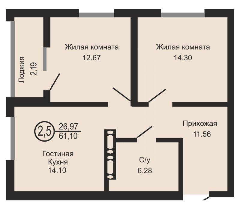 | ✅ B продаже двухкомнатная квартира, S - 61кв.м есть выбор этажей.