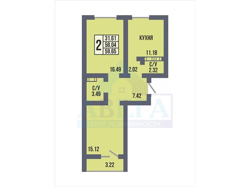 общая 59,65 м2, жилая 0 м2, кухни 0 м2 |