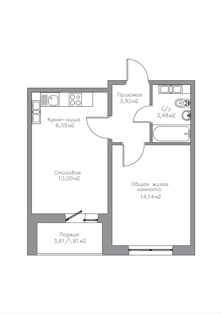 общая 39 м2, жилая 24 м2, кухни 6 м2 |