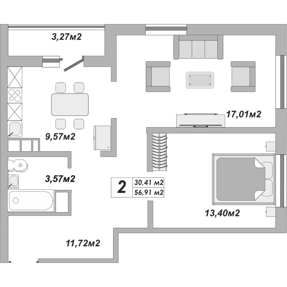 Двухкомнатная |
