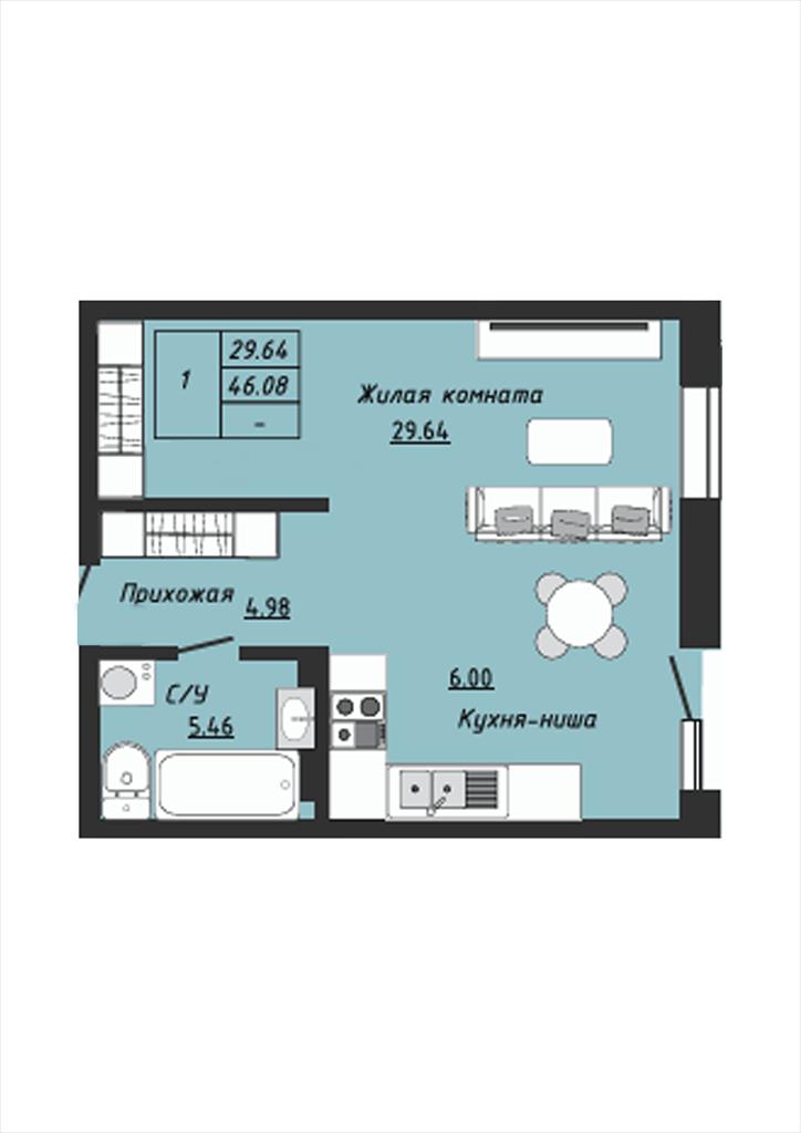 Ваша квартира 46 м² — это не «однушка», это просторное арт-пространство с потенциалом.