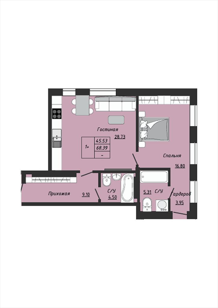 общая 68,39 м2, жилая 0 м2, кухни 0 м2 |