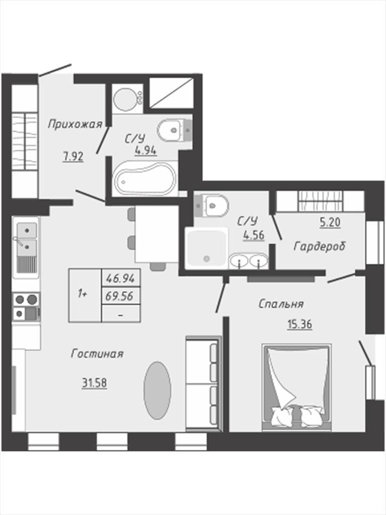 общая 69,56 м2, жилая 0 м2, кухни 0 м2 |