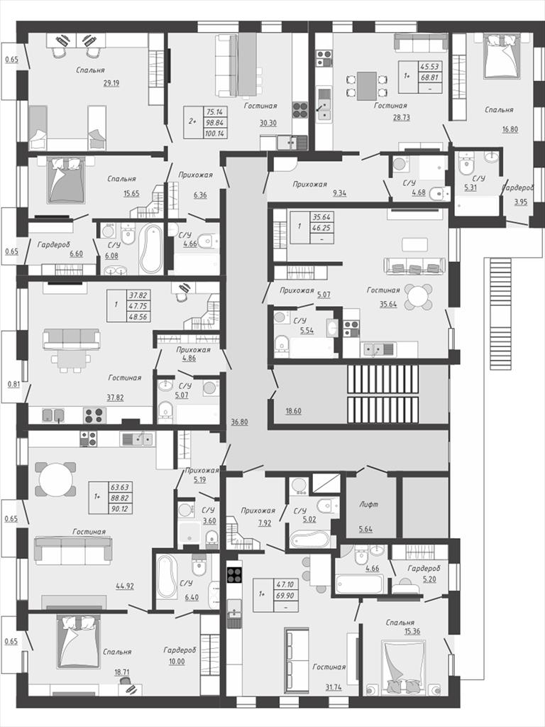Возможность с ремонтом под ключ и комплектацией мебелью;