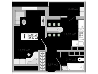 общая 38,64 м2, жилая 0 м2, кухни 0 м2 |