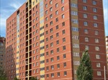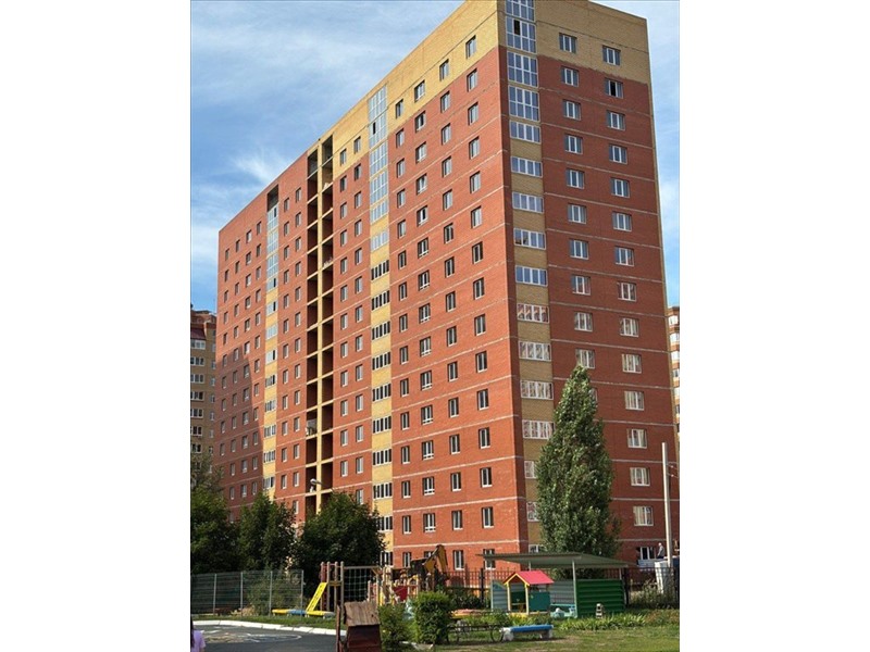 —15 - этажный кирпичный дом с фасадом из облицовочного кирпича (жёлтый и красный), цоколь из керамогранита.