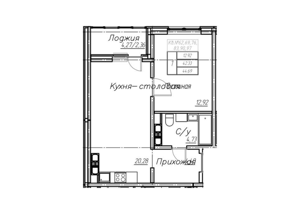 Однокомнатная квартира 45,00 м2 по ул. Гаранькина 22 за 4290000 руб. |