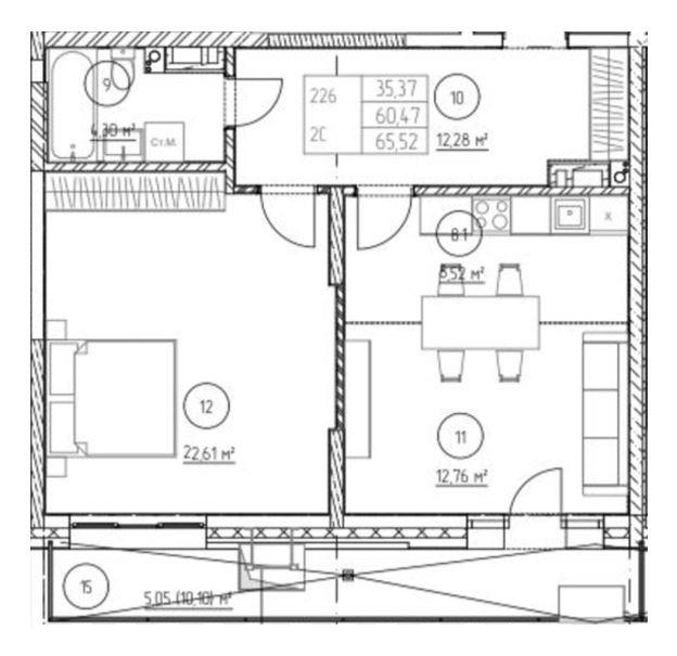 ✅В продаже двухкомнатная квapтиpa, S - 65,52 м.кв.