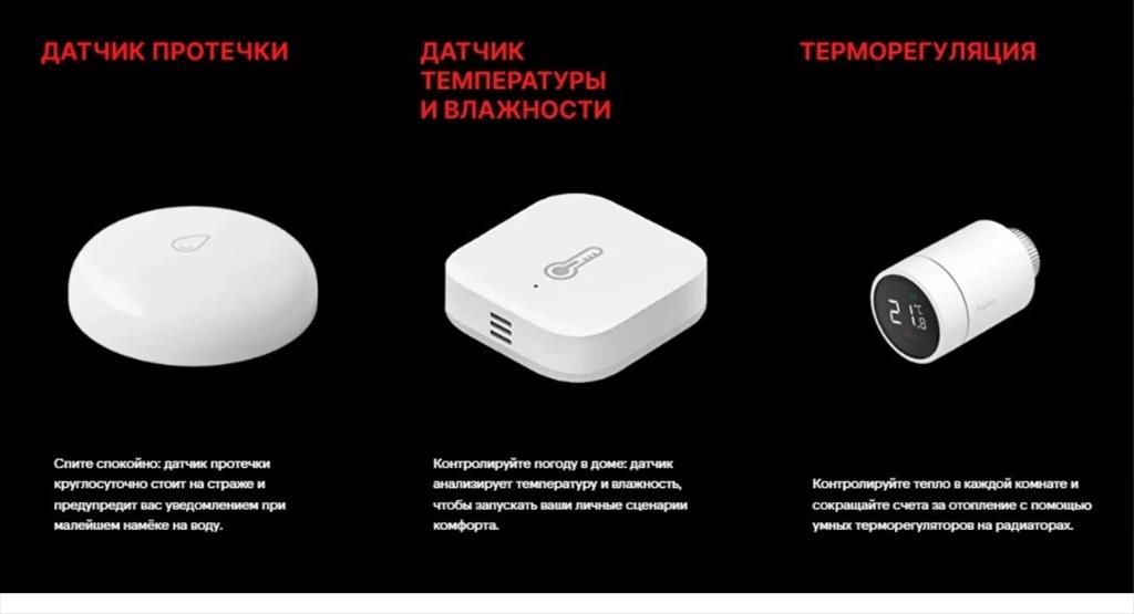 Безопасность 24/7: Датчики протечки: Страхуют от потопа. Мгновенная тревога на телефон. Централизованный свет: «Выключить всё» — одной кнопкой у входа или голосом.