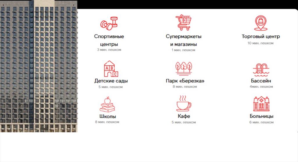 🏫 Всё для жизни — уже работает: Образование: Рядом школы и детсады с высокими рейтингами (район славится этим), центры развития. Медицина и спорт: Поликлиники, стоматологии, фитнес-клубы, салоны красоты. Повседневность: От банков до кофеен — всё, что нужно, находится в радиусе 1 км.