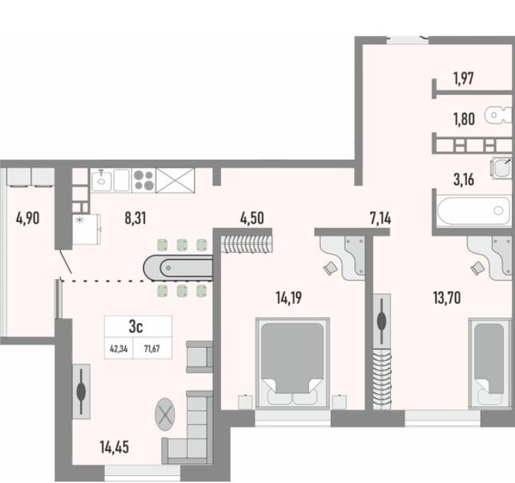 7 156 000 р. (99 847 р./м2) Подать заявку на ипотеку |