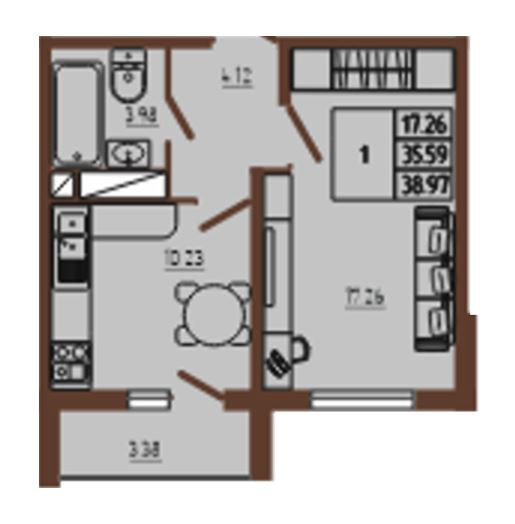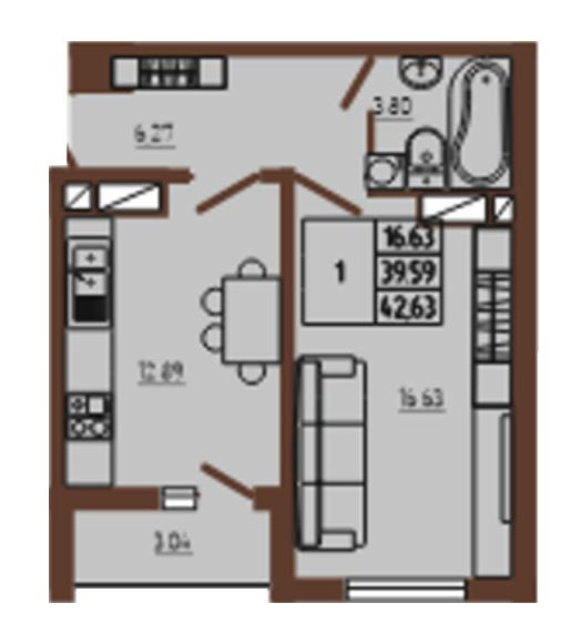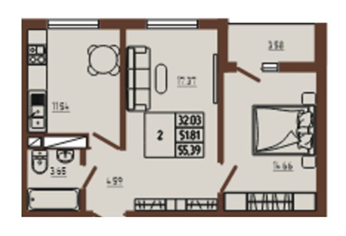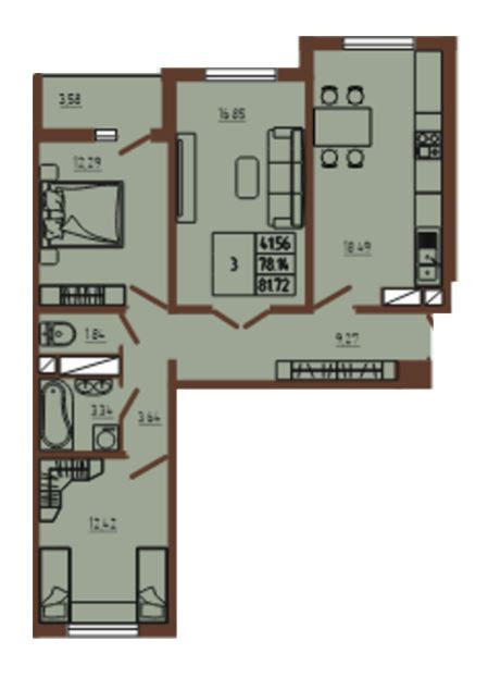 общая 81,71 м2, жилая 42 м2, кухни 0 м2 |